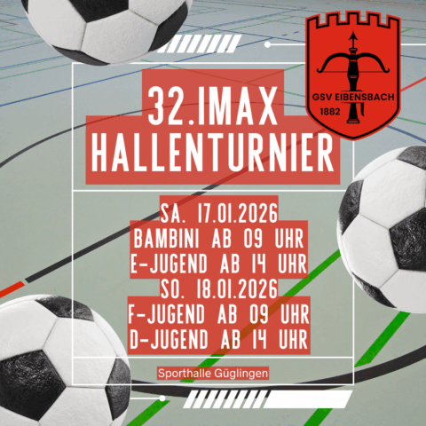 17. Oktober 2025Wir laden euch herzlich zum 32. IMAX Jugendfußball Hallenturnier am Samstag dem 17.01.26 & So. 18.01.26 ein! Freut euch...
